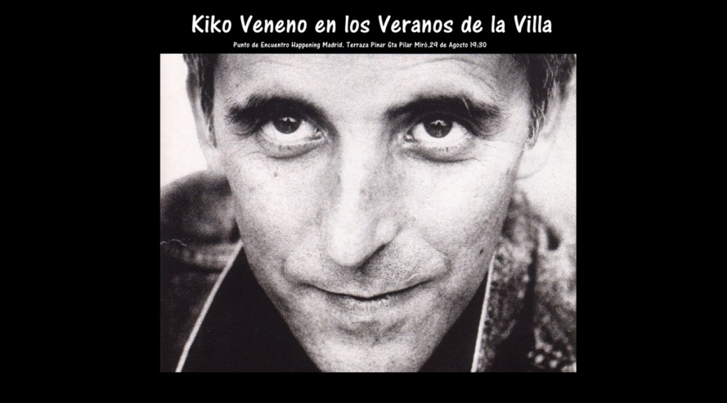 El Lunes 29 de Agosto de 2016 a las 21:00 tenemos el placer de poder ir a ver y escuchar a Kiko Veneno, al aire libre y de forma gratuita dentro de la programación de los Veranos de la Villa 2016, en el Auditorio al aire libre Pilar García Peña
