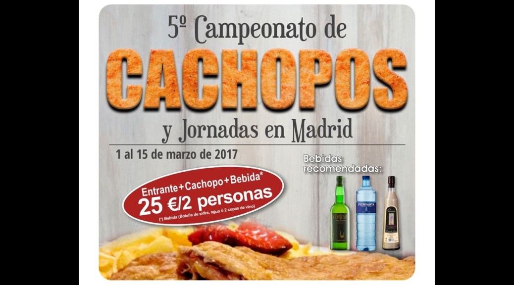 Durante estos días (del 1 al 15 de Marzo) se celebra en Madrid el V campeonato y jornadas del cachopo en Madrid. Son 33 los participantes y, atención, el precio de la cena para 2 personas (sale a 12,50 por persona lo que lo convierte en un aunténtico chollazo) incluye: