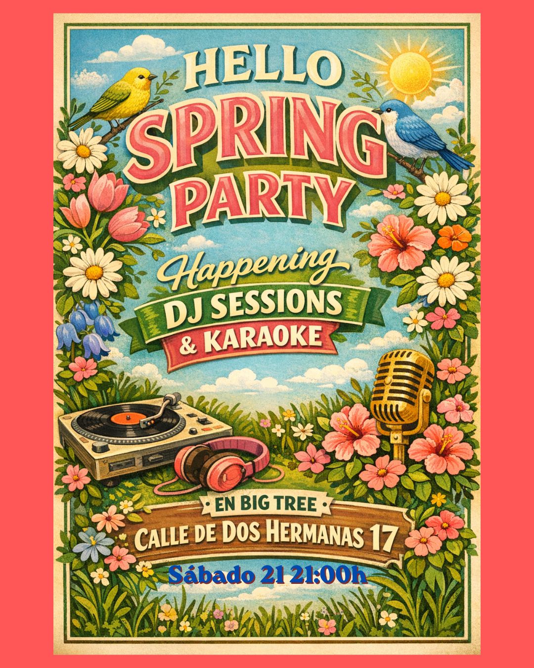 Sábado 21:00h: ¡Hello Spring Party! en Big Tree Books – Mi fiesta de cumpleaños