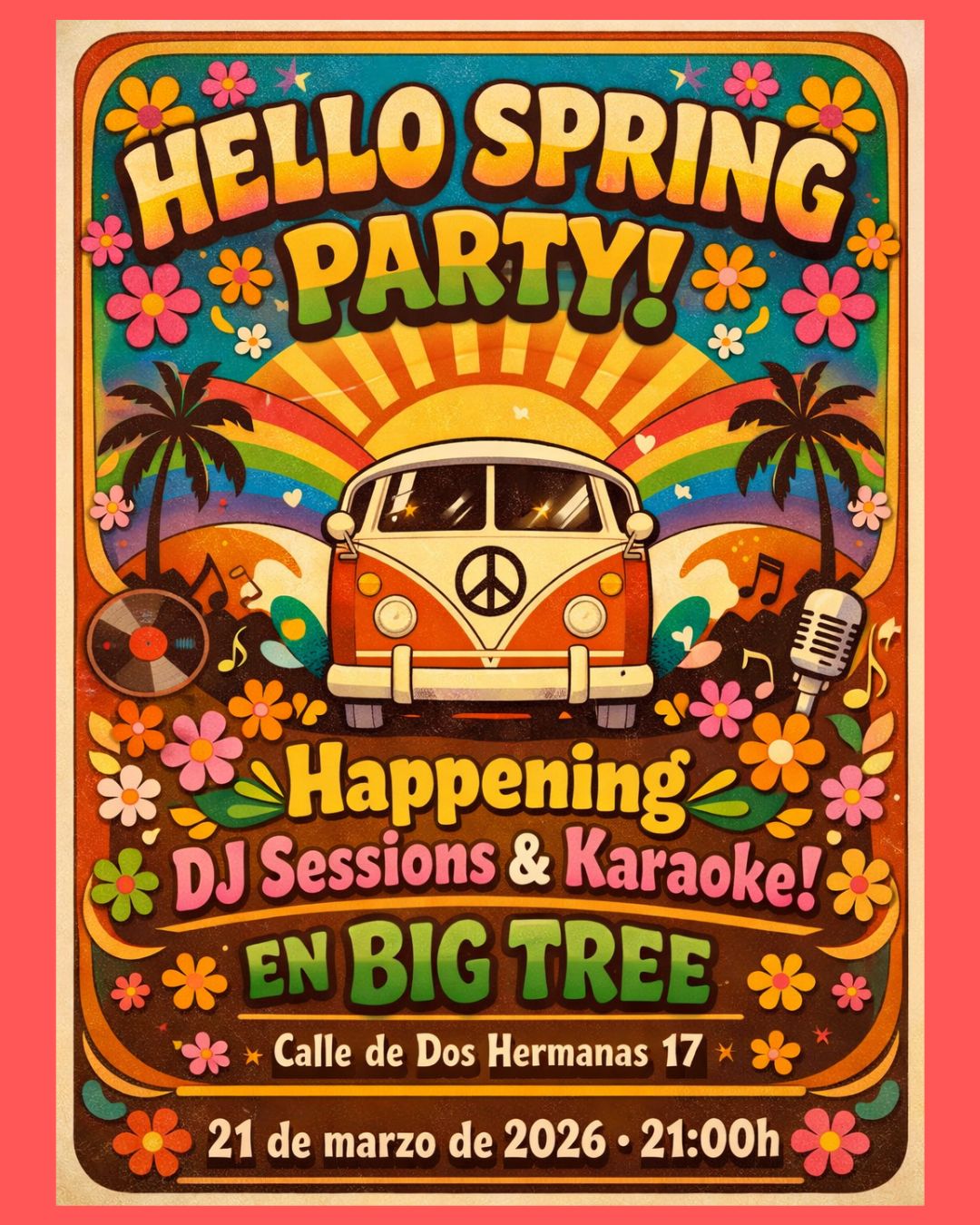 La tarde noche del sábado 21 llega el plato fuerte emocional del fin de semana: la ¡Hello Spring Party! en Big Tree Books, que es a la vez fiesta de bienvenida a la primavera, celebración del aniversario de Happening Madrid y mi fiesta de cumpleaños.