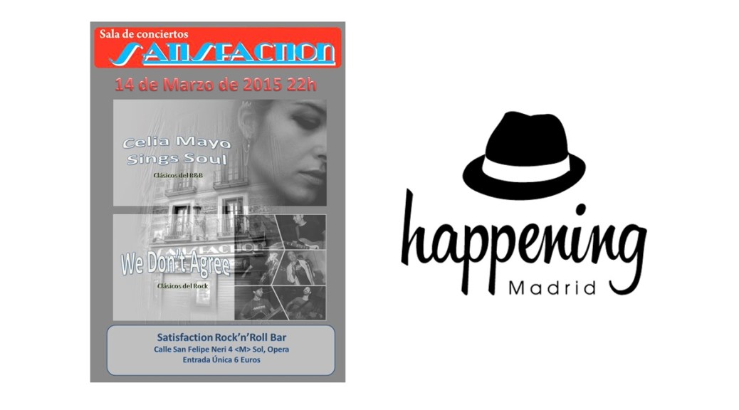 El próximo Sábado 14 de Marzo de 2015 desde Happening Madrid promovemos este concierto desde la Sala Satisfaction de Madrid. Clásicos del Soul y del Rock por dos nuevas formaciones para disfrutar de una gran noche de música.