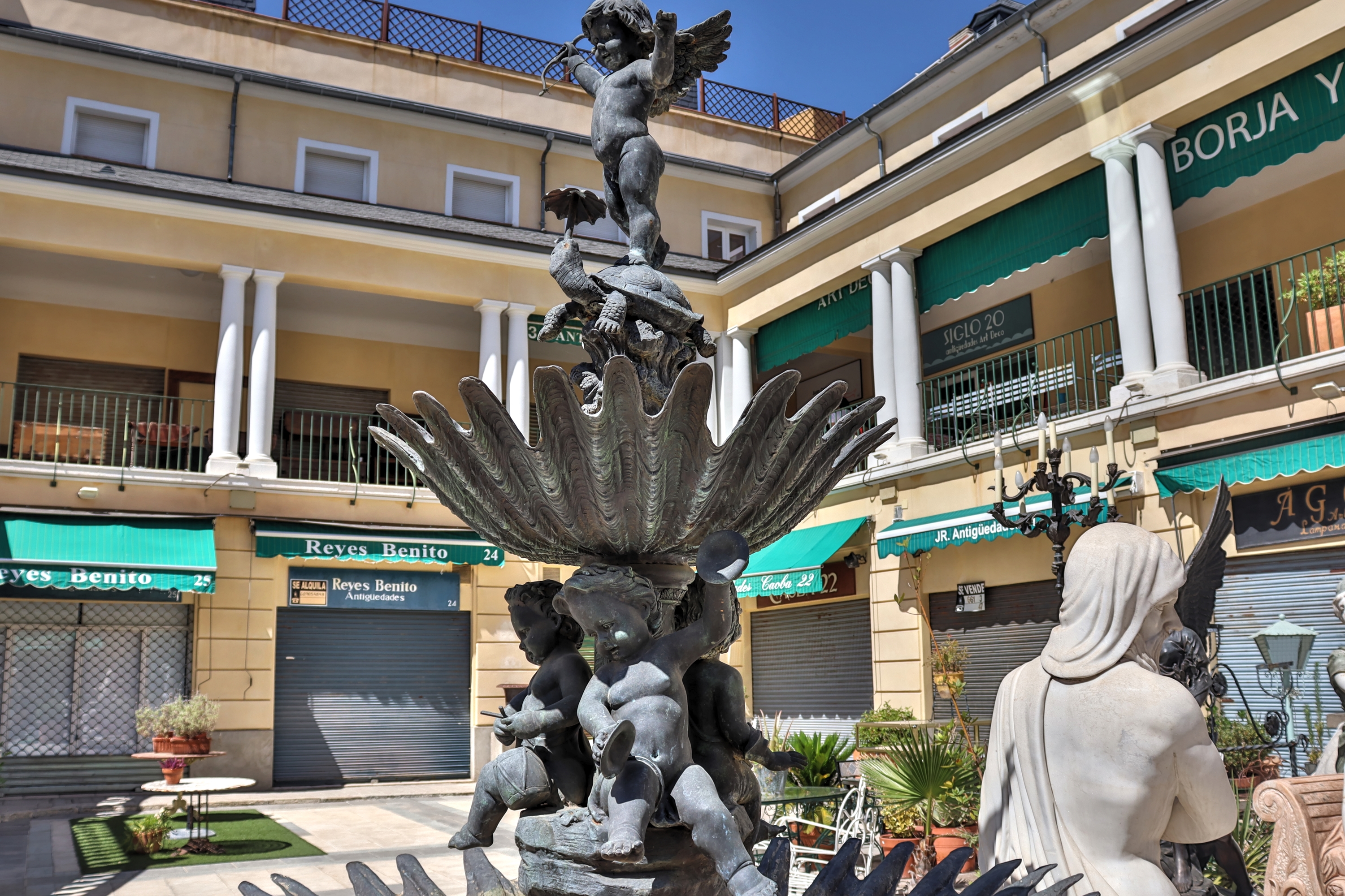 Las numerosas tiendas que había en el barrio fueron poco a poco cerrando y llenándose de tiendas de todo a cien y las llamadas tiendas de chinos. La Pastelería Blanco de Peña Prieta donde comprábamos pasteles casi todos los domingos llegó a su fin. Los niños se fueron haciendo mayores y abandonando poco a poco esta plaza. Aquí solo quedaron los abuelos como de si la canción Pueblo Blanco de Serrat se tratara.